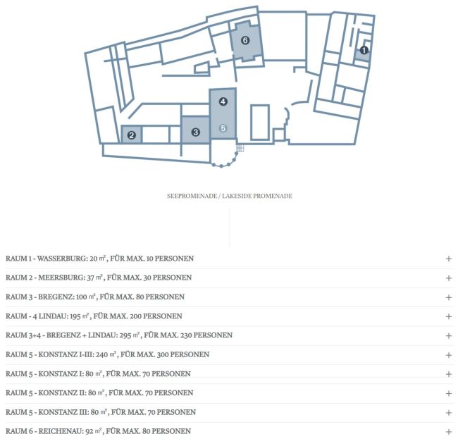 Von kleinen Meetings im Raum „Wasserburg“ (20 m², bis 10 Personen) bis hin zu großen Kongressen im Raum „Konstanz“ (245 m², bis 300 Personen) – unsere flexiblen Veranstaltungsräume im Bayerischer Hof und Reutemann-Seegarten passen sich Ihren Bedürfnissen an. Mit Tageslicht, Klimaanlage und moderner Technik wie Pinnwänden, Flipcharts und WLAN sind Sie bestens ausgestattet. Details zu den Räumen finden Sie hier.